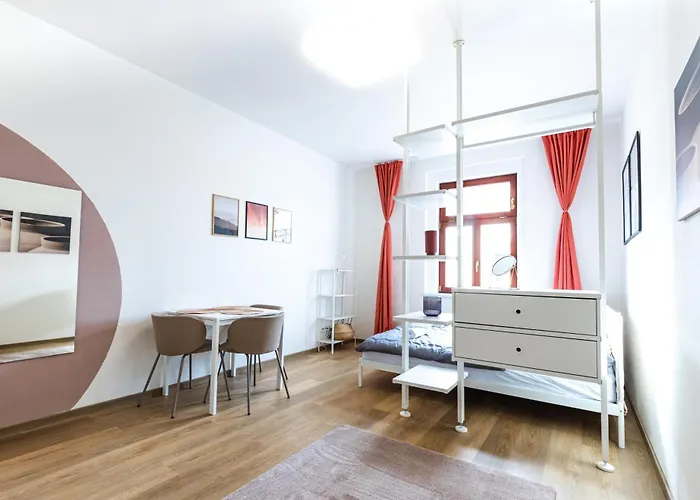 Stay2Gether Studio In Pink 16 - Main Train dairesi, Prag şehrinin eski bölgesinde, Žižkov Televizyon Kulesi'a yakın yer almaktadır. Krizikova metro istasyonuna yaklaşık 5 dakikalık yürüme mesafesinde yer alan bu konaklama birimi 1 yatak odası, 1 banyo ve tam donanımlı mutfaktan oluşmaktadır.
